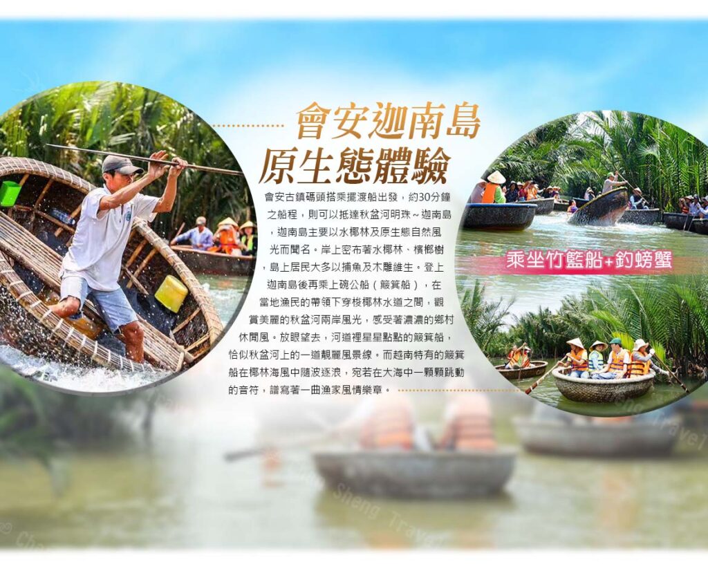會安→迦南島生態之旅<竹桶船體驗之旅+趣味釣螃蟹>→會安古鎮+夜遊