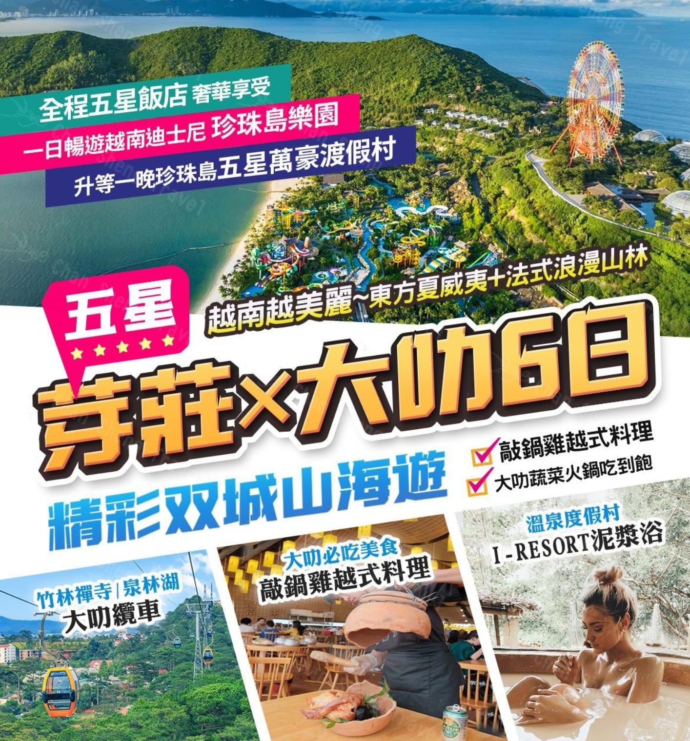 【五星南越芽莊】越南雙城芽莊.大叻五星萬豪珍珠島6日 |