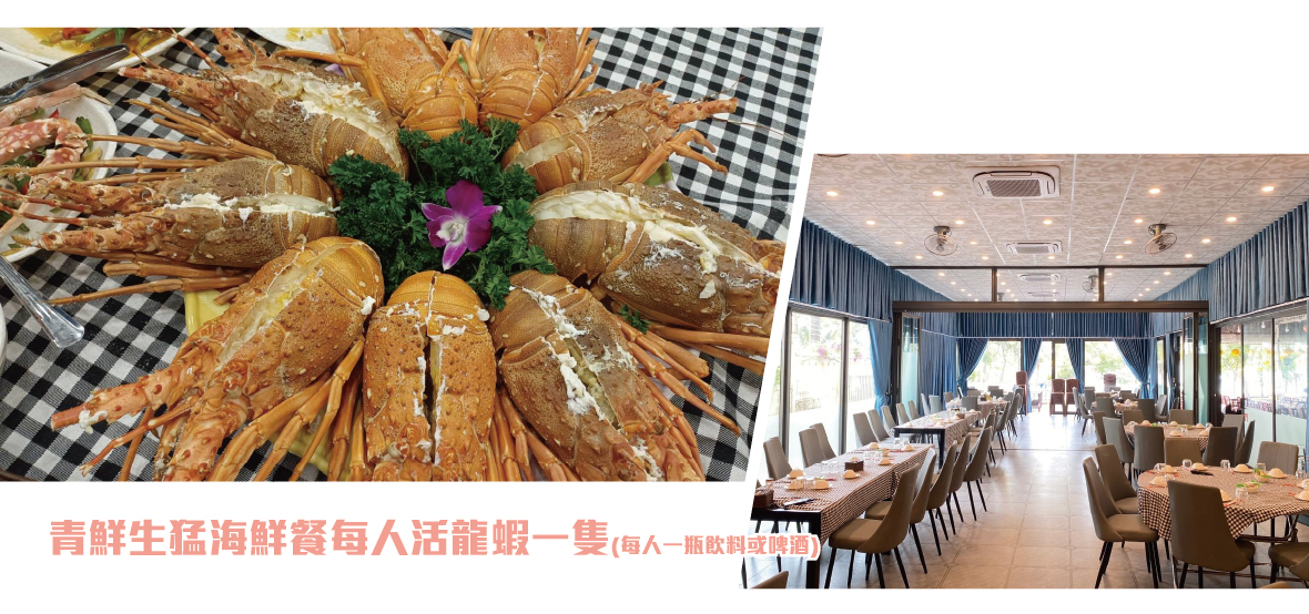 晚餐:青鮮生猛海鮮餐(每人龍蝦一隻&一瓶飲料或啤酒)