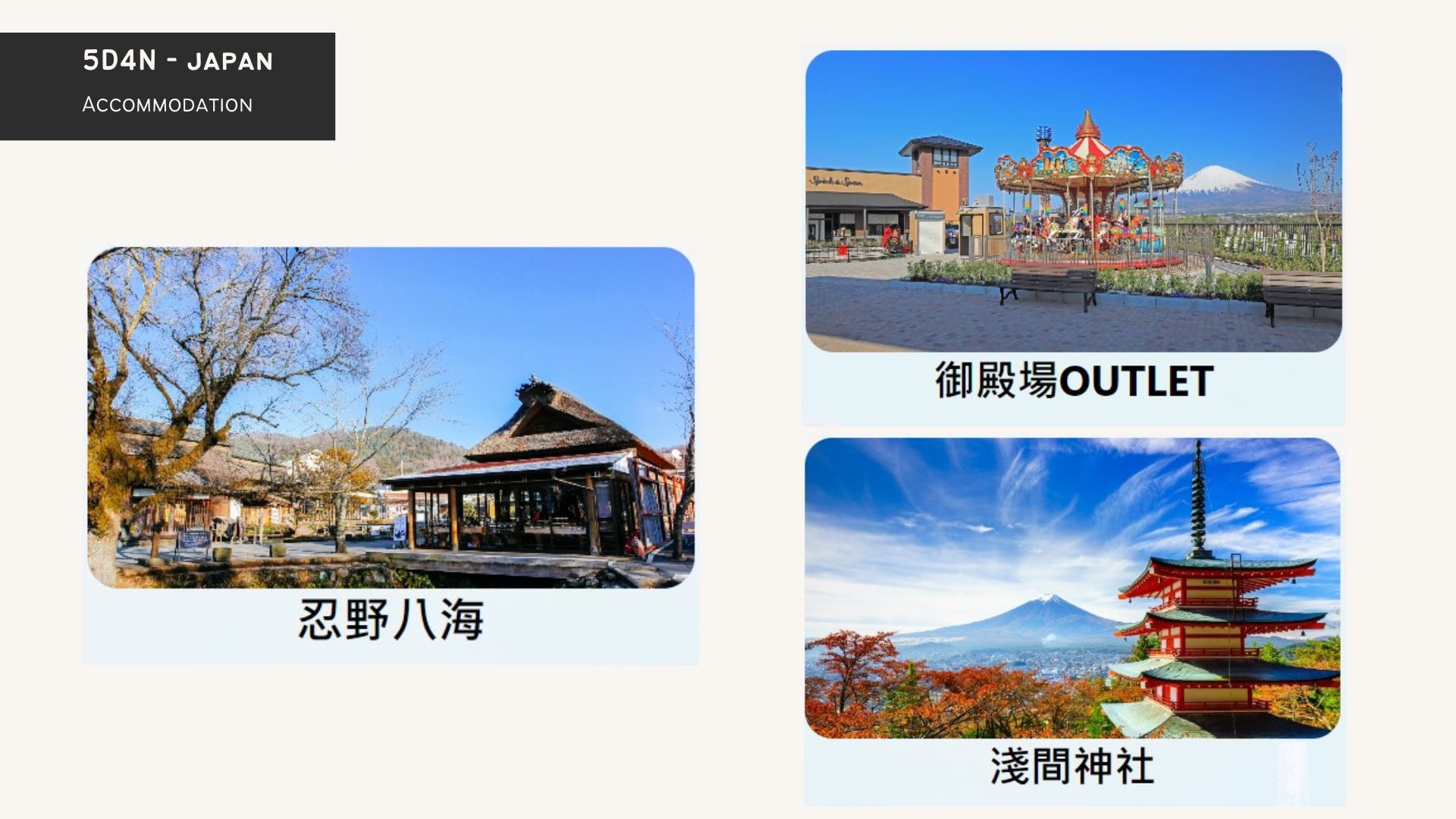 OMO5 東京大塚→淺間神社→忍野八海→天梯商店街(富士吉田本町商店街)→大石公園→河口湖鍾山苑溫泉