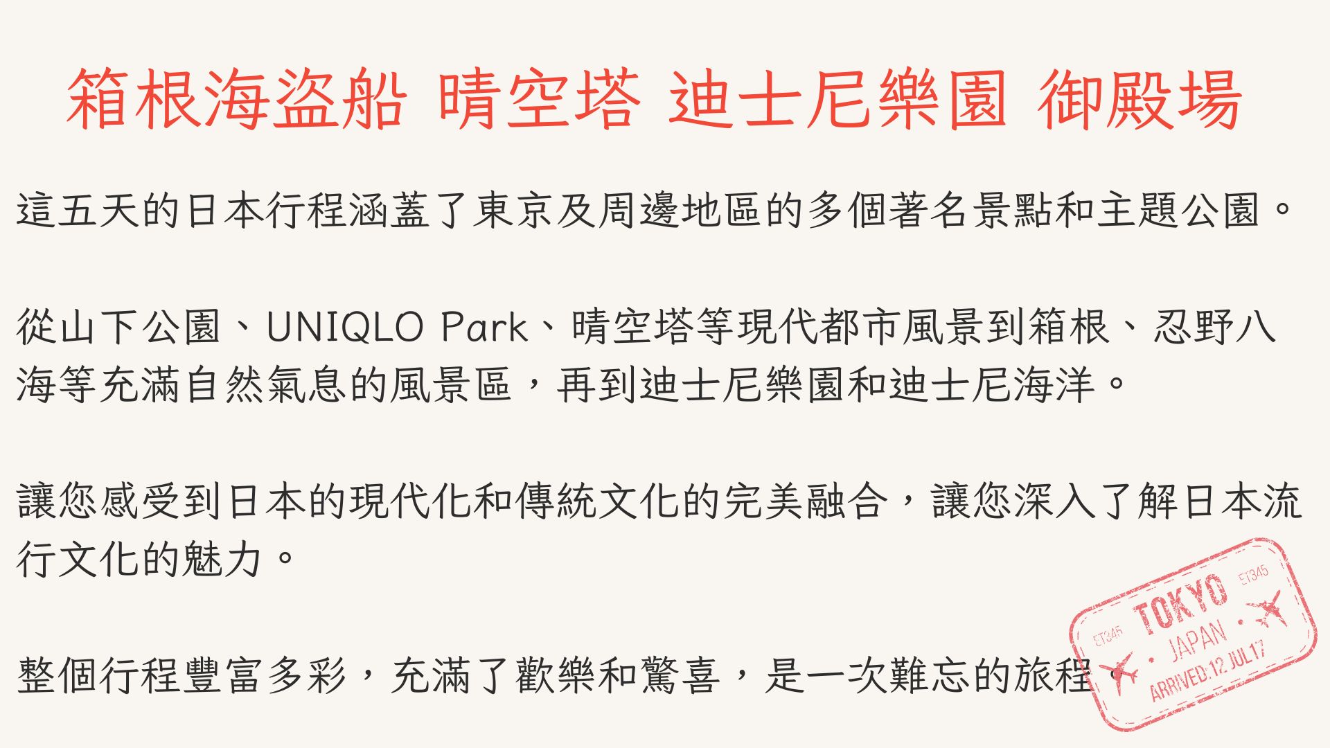 【東京迪士尼特別說明】