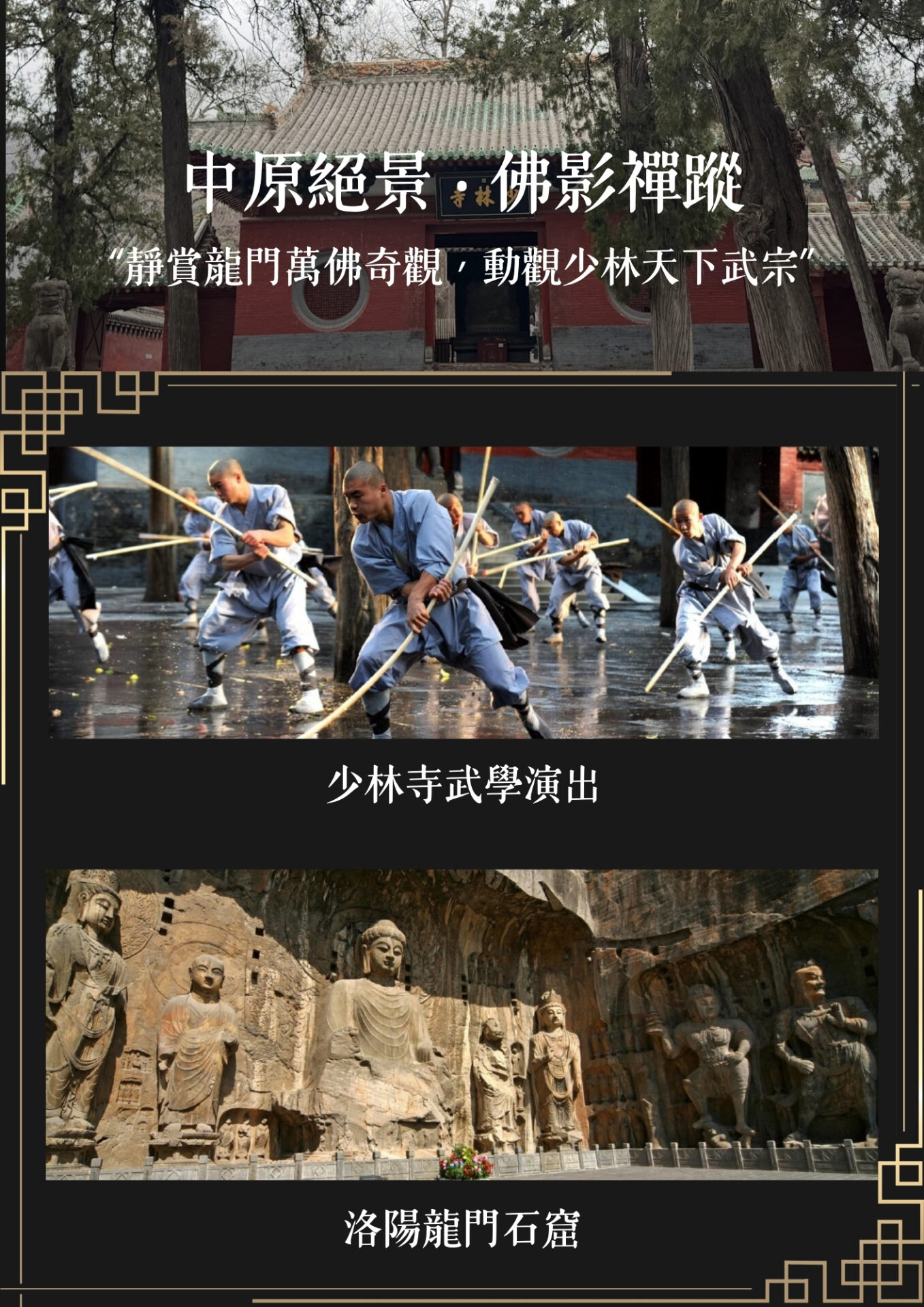 許昌(乘車約2小時)🚌 登封市(乘車約1.5小時)🚌 洛陽 → 少林寺 (含電瓶車+耳機導覽) -塔林+少林武術表演 → 洛邑古城