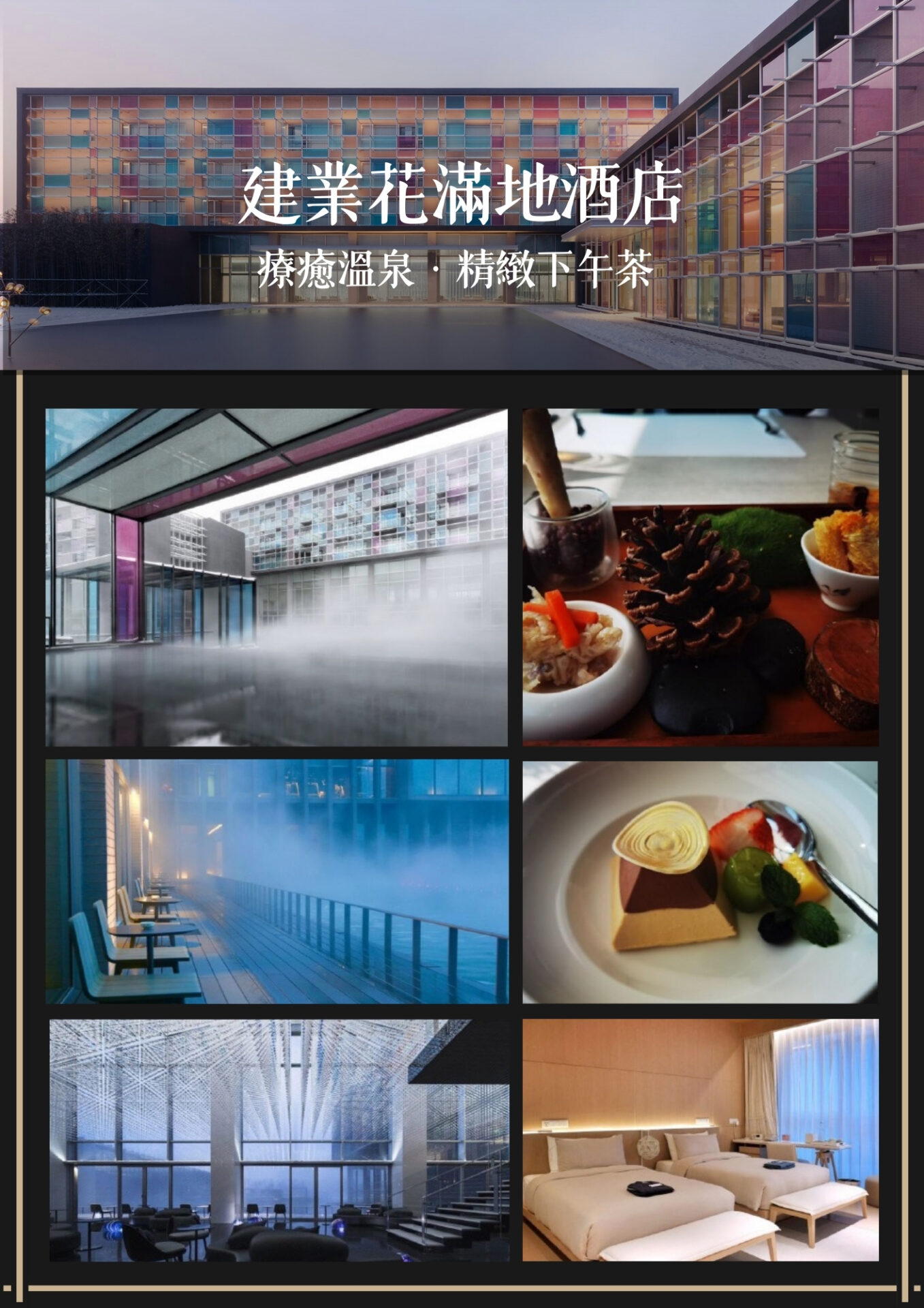 午餐後.前往今天入住的鄢陵建業花滿地酒店享受為您安排的下午茶+泡溫泉(泳衣自備)