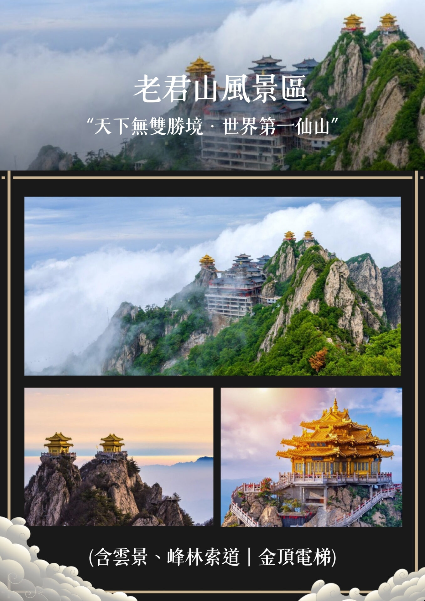 洛陽 🚌 欒川 → 老君山風景區+雲景索道+峰林索道+金頂電梯 🚌 洛陽 → 夜遊明堂天堂、外觀應天門 → 十裡畫屏