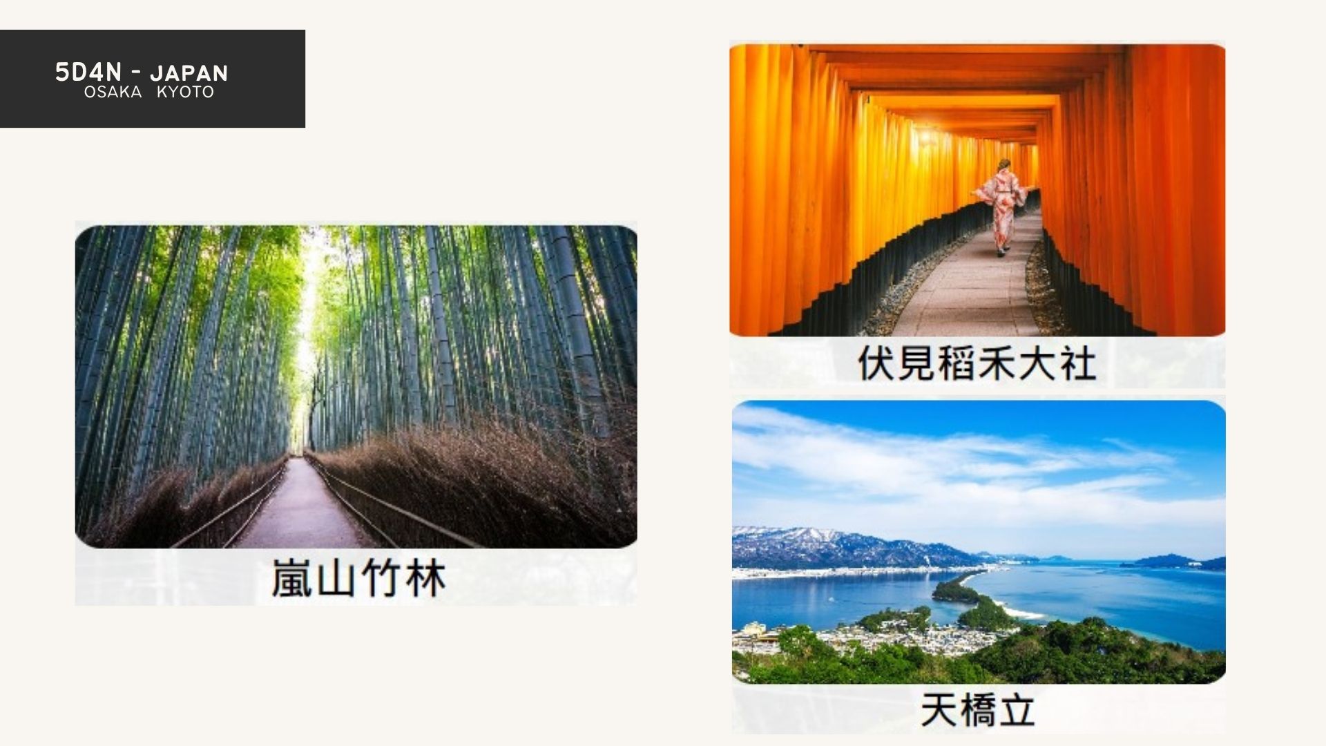 京都北邊的天橋立,是現在很熱門的京都郊區旅遊景點,像飛龍般蜿蜒在宮津灣的天橋立經典畫面與仙台松島、廣島宮島並稱為「日本三景」,不管什麼季節來天橋立都很美,更推薦可以登上飛龍觀和昇龍觀展望台一覽天橋立獨特的景色。