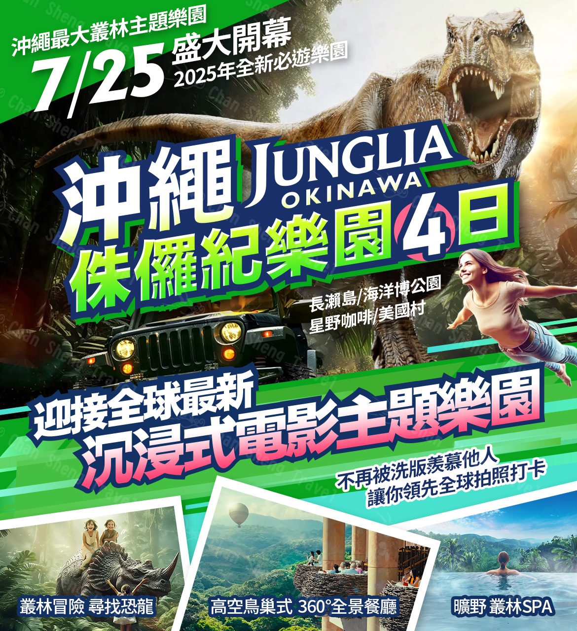 JUNGLIA叢林侏儸紀樂園.長瀨島.海洋博公園.雙樂園四日 |